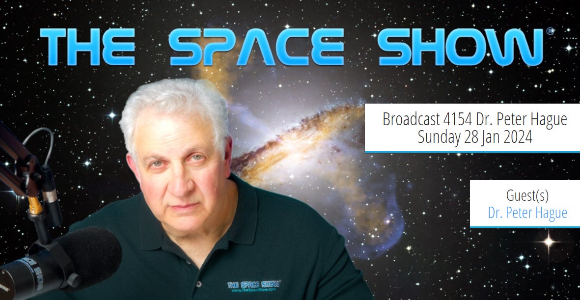 This coming Sunday I will be appearing on The Space Show with Dr. David Livingstone. I’ve done this a few times before and it is always an informative discussion.
