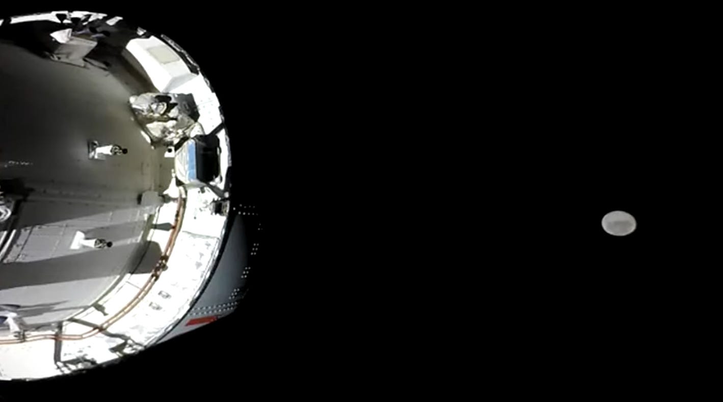 The Moon is now quite large in the window, and the crew have already begun visual observations of it.