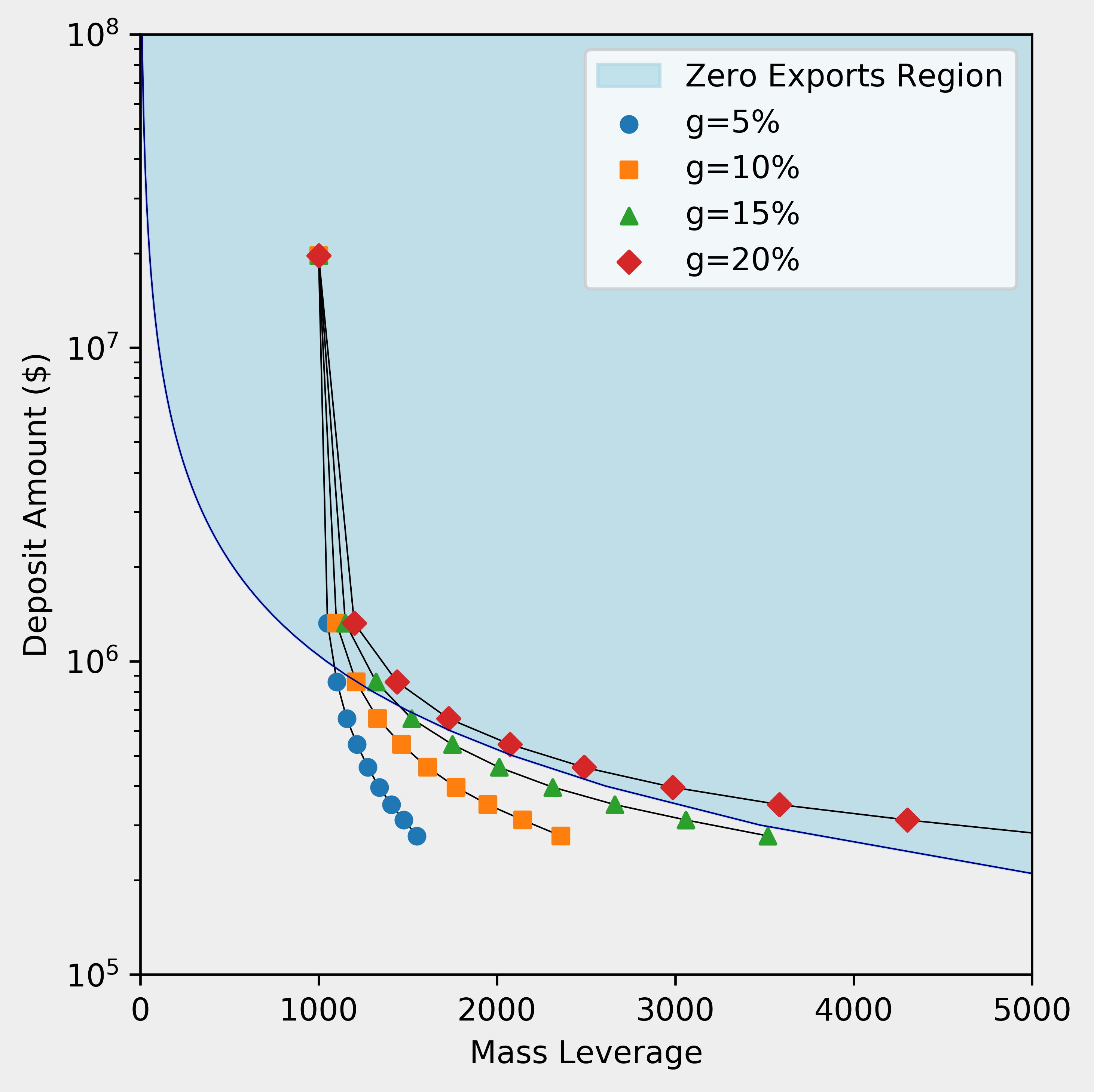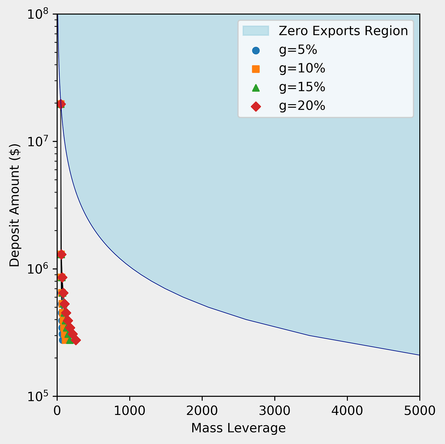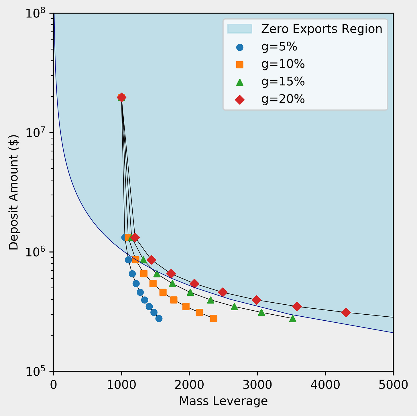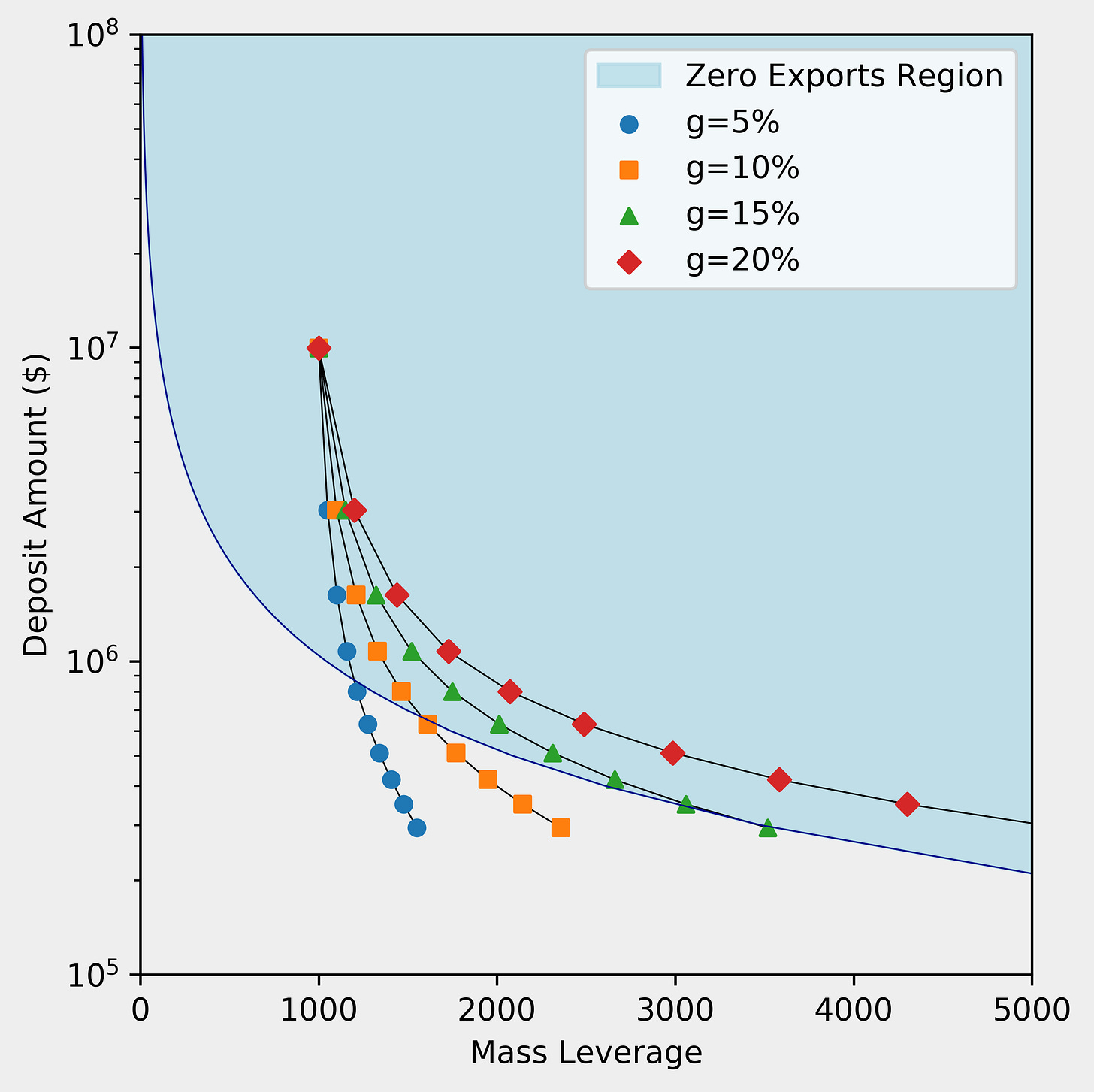 This now gives a strict criteria for sustaining the colony without exports to Earth; the leverage must grow at least as quickly as the wealth of new colonists falls.